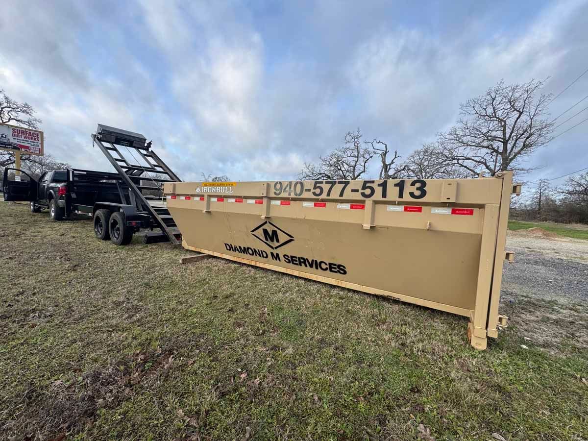After the roofing dumpster is hauled away, your property is free of the shingle debris, nails, and underlayment scraps that would otherwise create hazards or require multiple trips to dispose of properly. Diamond M Services of TX handles pickup and disposal, so your crew can focus on installing the new roof instead of managing waste logistics.